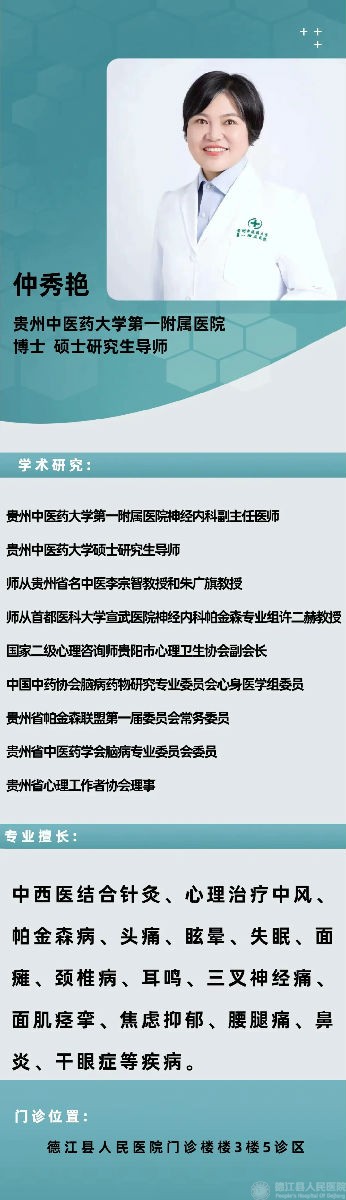 - 【专家可约】4月15(下周三)贵州中医药大学第一附属医院仲秀艳博士坐诊德江县人民医院中医科门诊